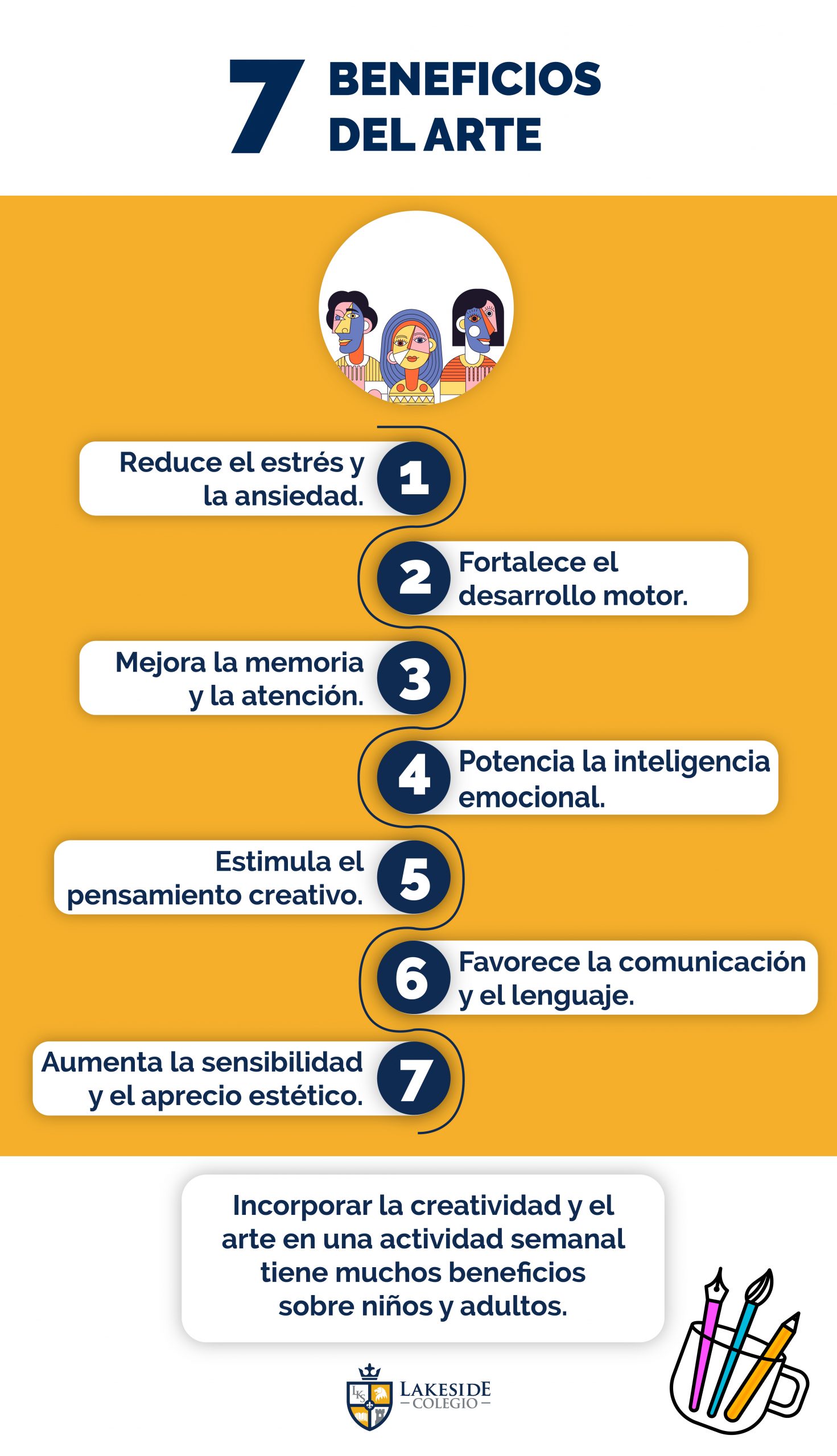 Además, el arte también tiene beneficios para el cerebro de los niños y niñas, según diversos estudios de neurociencia. Algunos de estos beneficios son: