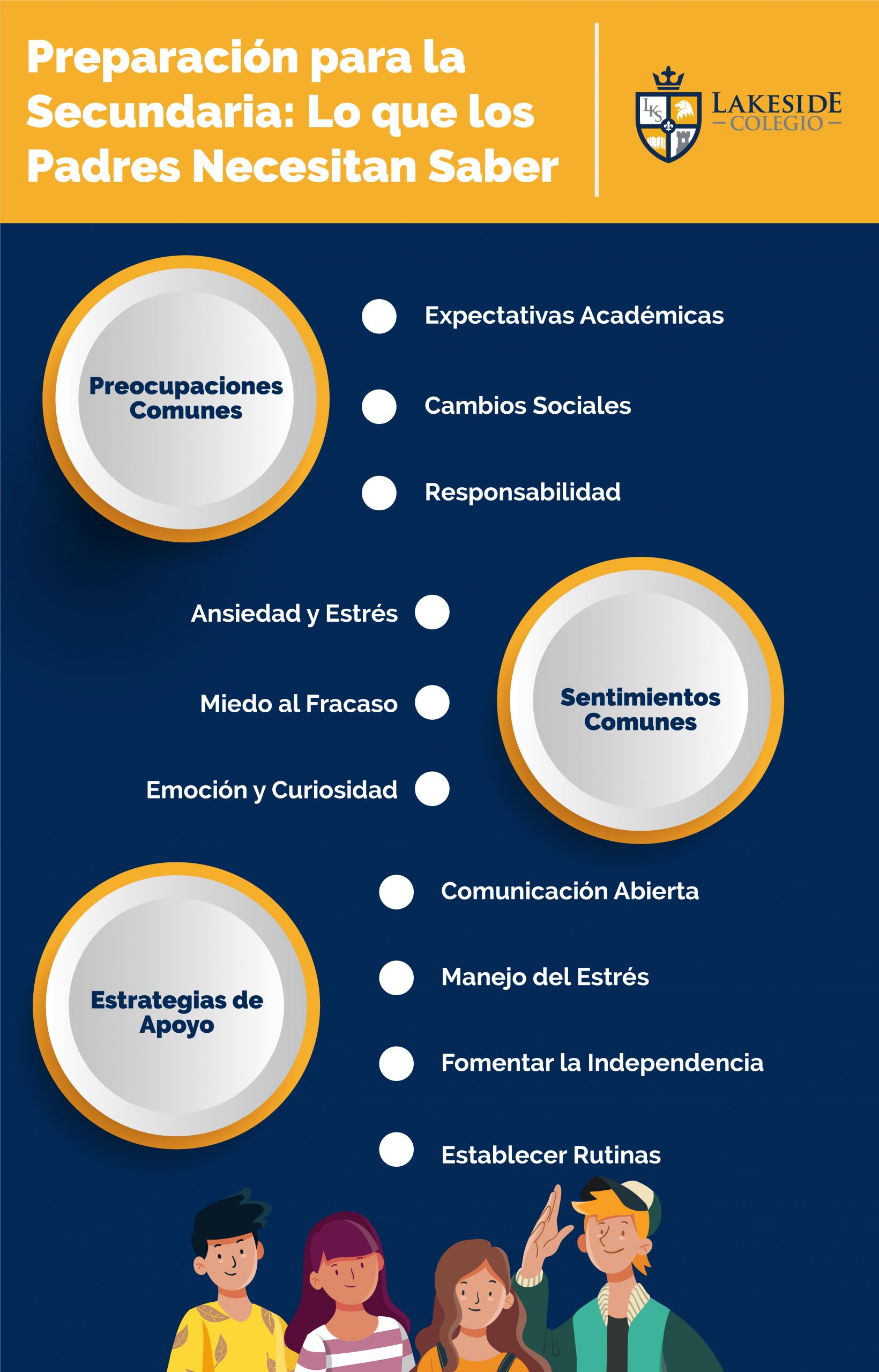 La transición a la secundaria es un momento emocionante y desafiante para los estudiantes y sus familias. En el Colegio Lakeside, entendemos la importancia de esta etapa y nos comprometemos a apoyar tanto a los estudiantes como a sus padres durante este proceso. Los apoyamos y tenemos las puertas abiertas para escucharlos y ayudarlos en la transición. Al trabajar juntos, padres y escuela, podemos asegurarnos de que los estudiantes estén bien preparados para enfrentar los desafíos de la secundaria y más allá.